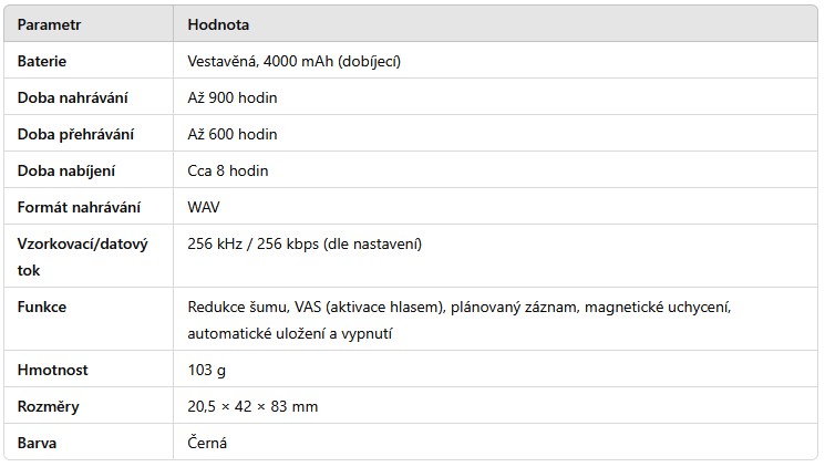 Představte si, že máte spolehlivého společníka, který zaznamená každé slovo, nápad i zvuk, aniž byste se o něj museli neustále starat. Tento záznamník v kovovém provedení je navržen tak, aby vám usnadnil život – přehledně, efektivně a organizovaně – a vy se tak můžete soustředit na to, co je opravdu důležité.