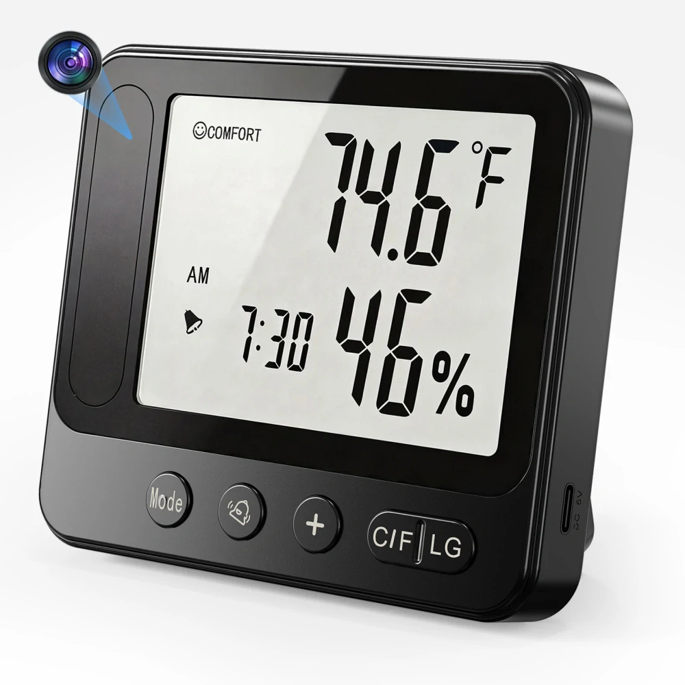 Více než jen kamera: Meteostanice disponuje velkým 3,9" LCD displejem, který zobrazuje vnitřní teplotu, vlhkost, datum a přesný čas. Kromě bezpečnostních funkcí tak slouží jako praktický doplněk domácnosti. Kamera je vybavena nočním viděním s dosahem až 6 metrů, takže váš prostor bude v bezpečí i za úplné tmy.