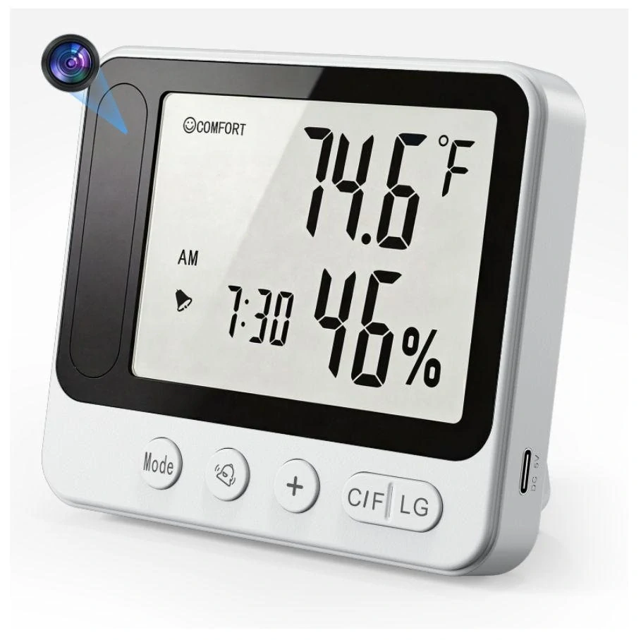 Více než jen kamera: Meteostanice disponuje velkým 3,9" LCD displejem, který zobrazuje vnitřní teplotu, vlhkost, datum a přesný čas. Kromě bezpečnostních funkcí tak slouží jako praktický doplněk domácnosti. Kamera je vybavena nočním viděním s dosahem až 6 metrů, takže váš prostor bude v bezpečí i za úplné tmy.